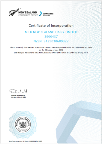 Milk New Zealand Dairy Limited is a Registered New Zealand Company with the NZ Companies Office.